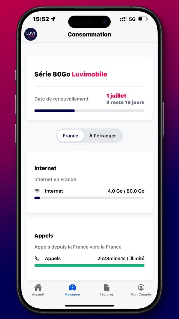 2. Comparez sur 24h : notez la conso téléphone le matin et le soir, puis comparez à l’espace client