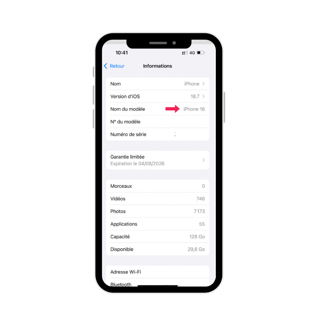 2. Allez dans Informations et regardez le nom du modèle.